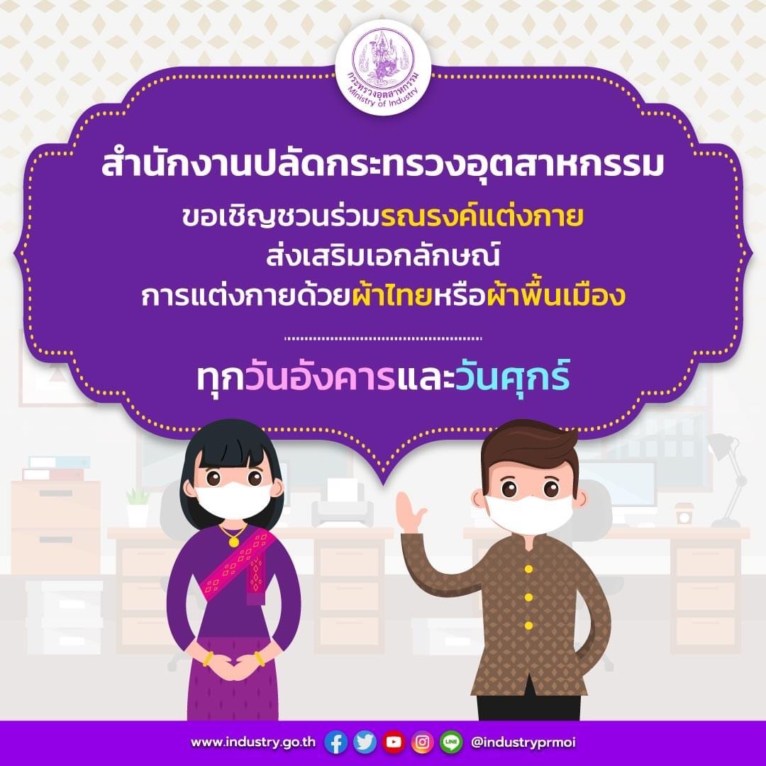 ขอเชิญชวนร่วมรณรงค์แต่งกายส่งเสริมเอกลักษณ์การแต่งกายด้วยผ้าไทยหรือผ้าพื้นเมือง