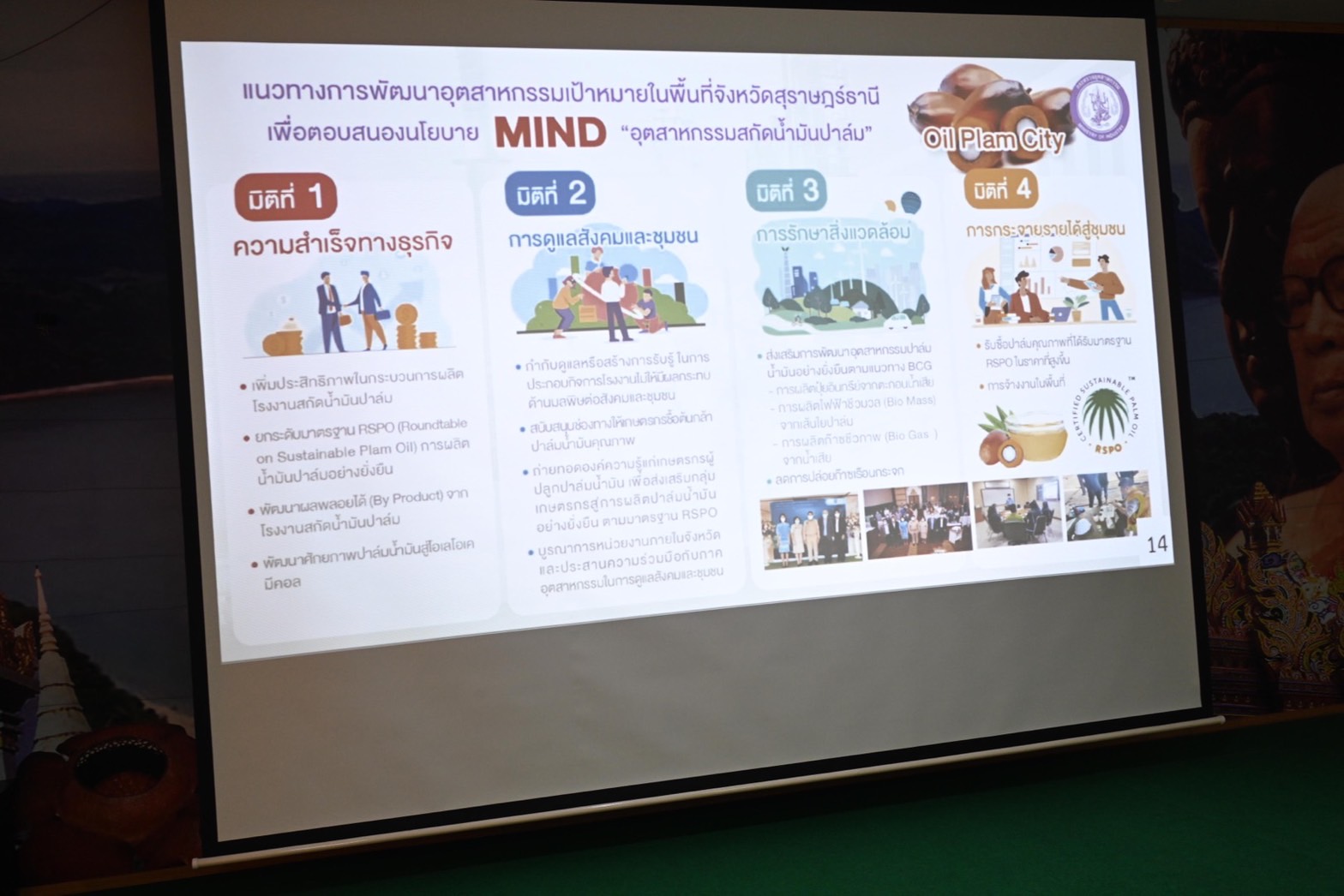 ปลัดฯ ณัฐพล ลงพื้นสุราษฎร์ธานี มอบแนวทางการขับเคลื่อนนโยบาย MIND เน้นย้ำบูรณาการงานของหน่วยงานในพื้นที่ มุ่งพัฒนาอุตสาหกรรมเป้าหมาย เร่งกระจายสินค้าชุมชนสู่ค้าปลีก สร้างความเข้มแข็งอย่างยั่งยืน