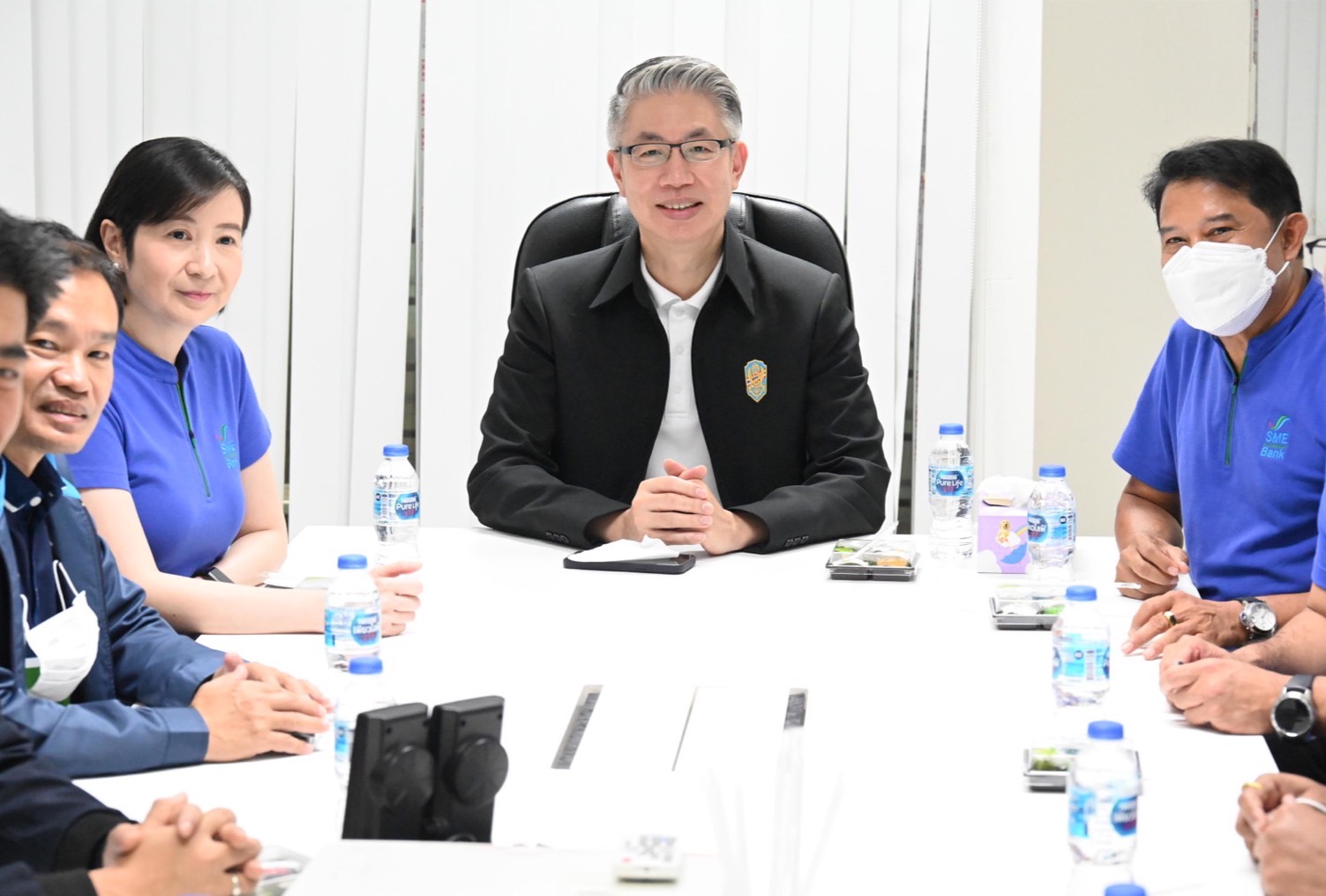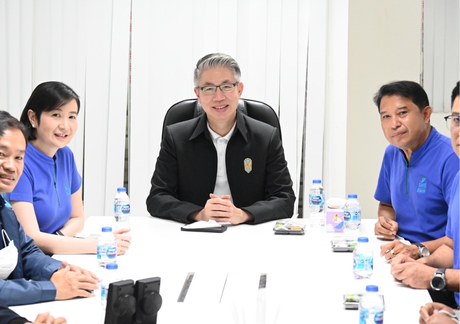หลังจากนั้น ปลัดกระทรวงอุตสาหกรรม และคณะได้ให้ธนาคารพัฒนาวิสาหกิจขนาดกลางและขนาดย่อมแห่งประเทศไทย (ธพว.) นำโดย นายวัฒนา แก้วประจุ ผู้อำนวยการภาค 7 และนายปฐมนนท์ ผ่องอำไพ รองผู้จัดการเขต 24 นำเสนอโครงสร้างของแต่ละสาขา (ชุมพร ระนอง สุราษฎร์ธานี) และผลการดำเนินงานด้านการอนุมัติสินเชื่อและการเบิกจ่าย ปริมาณ NPL ในแต่ละพื้นที่ และแผนการดำเนินงานในอนาคต พร้อมกันนี้ ได้ลงพื้นที่ตรวจเยี่ยม ธพว.สาขาสุราษฎร์ธานี เพื่อให้กำลังใจแก่เจ้าหน้าที่ภายในหน่วยงานดังกล่าวด้วย
