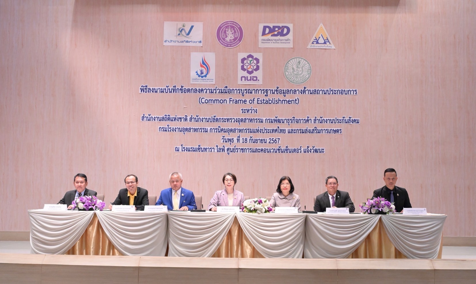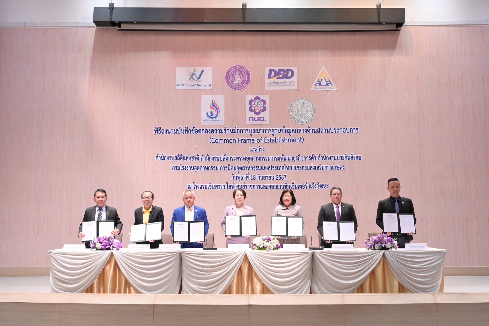 รองปลัดฯ ใบน้อย ร่วมพิธีลงนามบันทึกข้อตกลงความร่วมมือการบูรณาการฐานข้อมูลกลางด้านสถานประกอบการ (Common Frame of Establishment) โดยความร่วมมือระหว่าง 7 หน่วยงาน