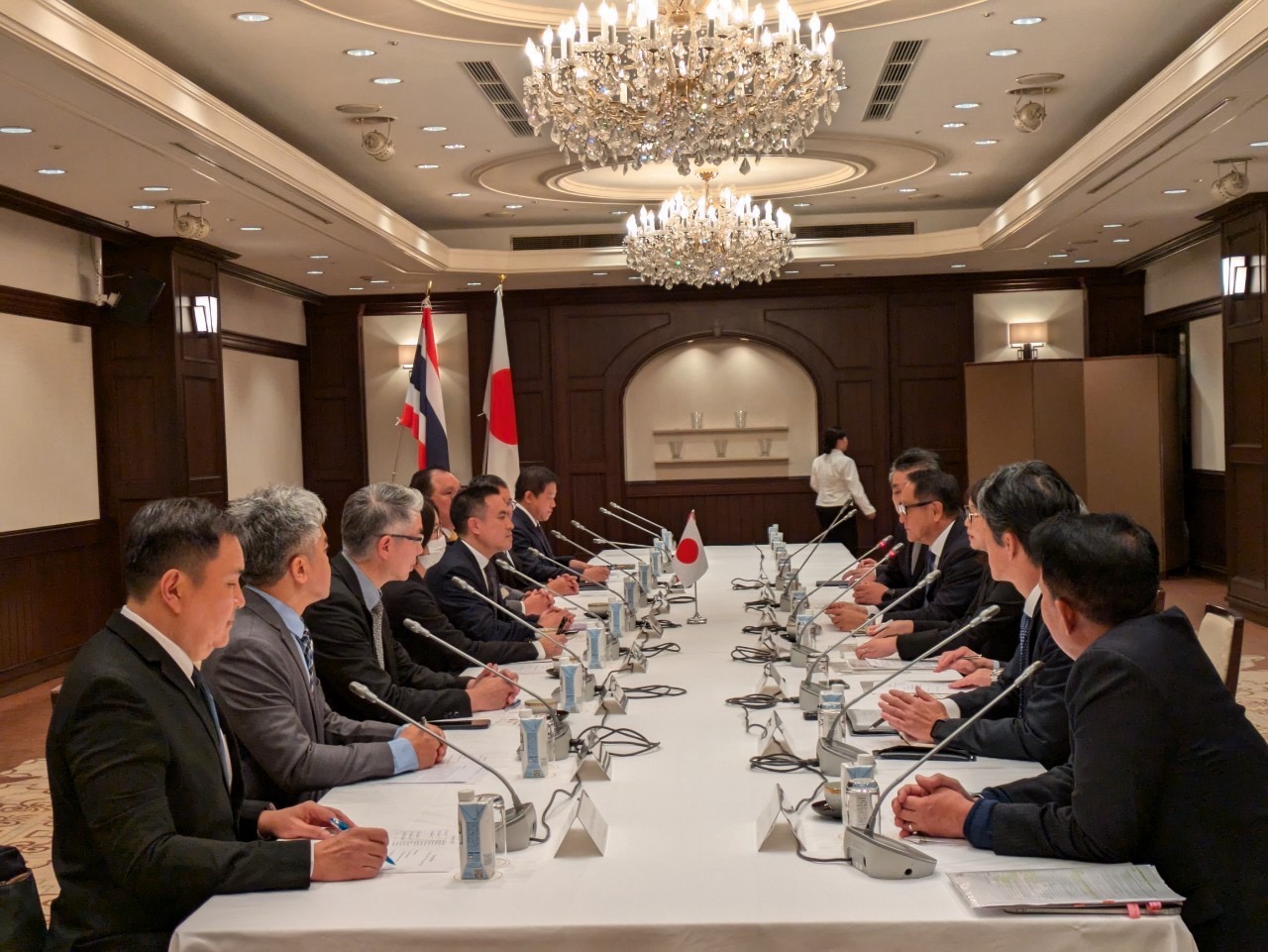 นายเอกนัฏฯ พร้อมสานต่อการจัดตั้งกลไกการหารือ Energy and Industrial Dialogue ตามข้อเสนอของนายกรัฐมนตรีญี่ปุ่น เพื่อยกระดับความร่วมมือในอุตสาหกรรมยานยนต์ โดยเฉพาะอย่างยิ่งการแก้ไขปัญหาการชะลอตัวของอุปสงค์ อุปสรรคทางกฎระเบียบ และการพัฒนาห่วงโซ่อุปทาน และโครงการ Global South Future-Oriented Co-Creation Project เป็นโครงการที่ส่งเสริมความร่วมมือแบบได้ประโยชน์ร่วมกัน (All-win) ระหว่างภาคเอกชนของทั้งสองประเทศ โดยไทยพร้อมสนับสนุนให้ภาคเอกชนไทยเข้าร่วมโครงการดังกล่าว ขณะที่การพัฒนาบุคลากร ทั้งสองฝ่ายยืนยันที่จะสานต่อความร่วมมือในการพัฒนาบุคลากร โดยเฉพาะโครงการ LASI, LIPE, และ Smart Monodzukuri ซึ่งมีบุคลากรไทยได้รับการพัฒนาแล้วกว่า 1,800 คน นอกจากนี้ ยังได้แสดงความยินดีต่อญี่ปุ่นในการเป็นเจ้าภาพจัดงาน World Expo 2025 ในช่วงเดือนเมษายน 2025 ณ จังหวัดโอซาก้า