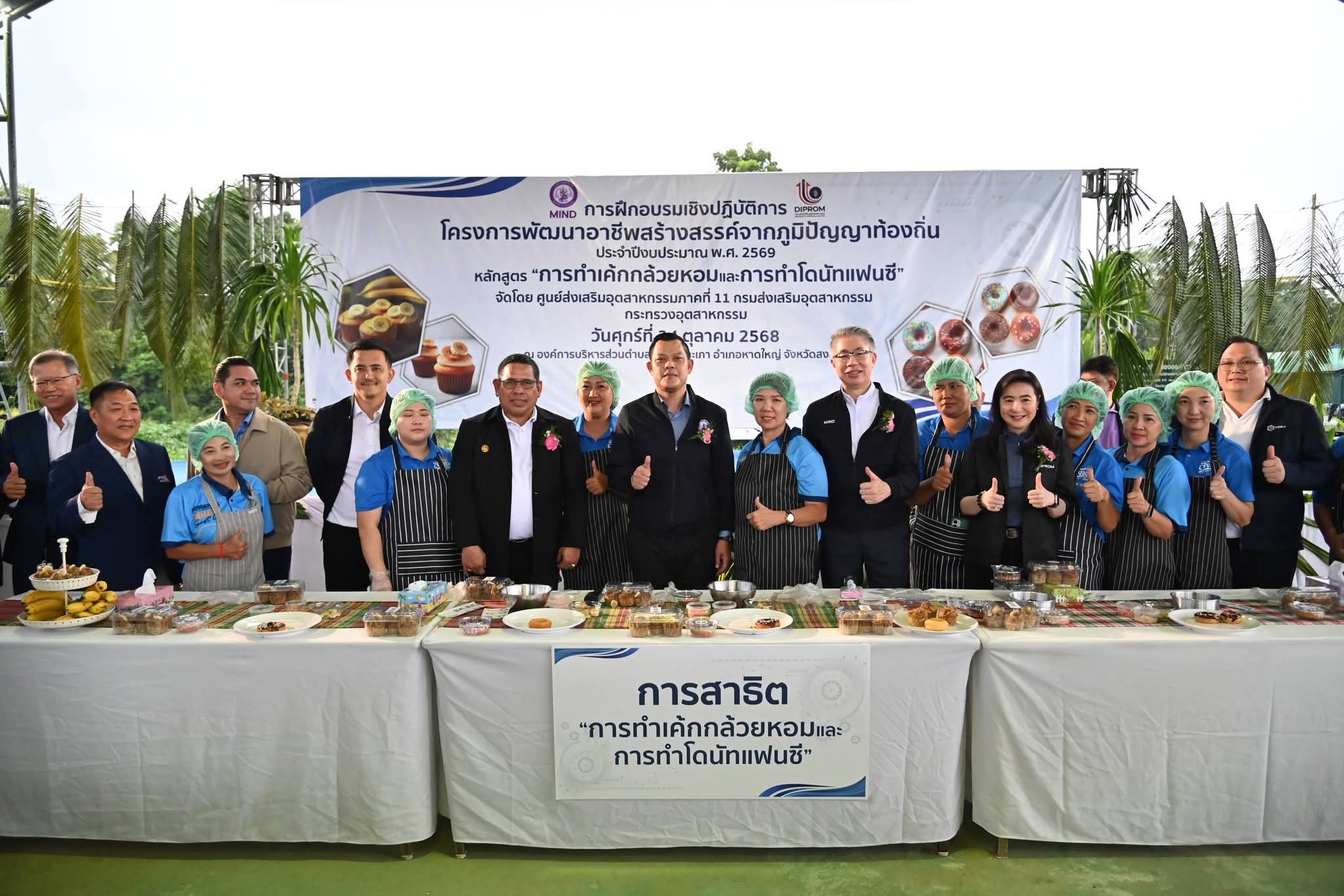 24 ตุลาคม 2568 - นายธนกร วังบุญคงชนะ รัฐมนตรีว่าการกระทรวงอุตสาหกรรม ให้เกียรติเป็นประธานปิดกิจกรรมฝึกอบรมเชิงปฏิบัติการ “โครงการพัฒนาอาชีพสร้างสรรค์จากภูมิปัญญาท้องถิ่น” หลักสูตร “การทำเค้กกล้วยหอมและโดนัทแฟนซี”