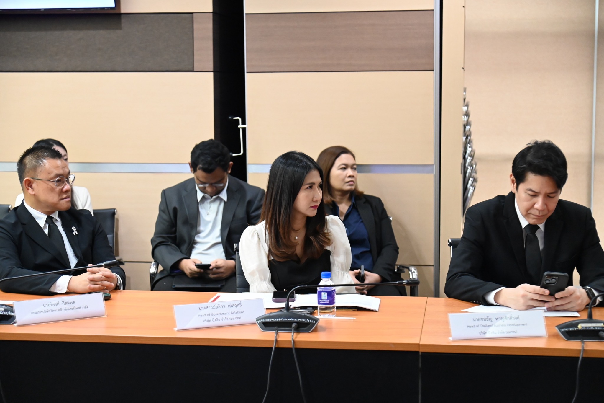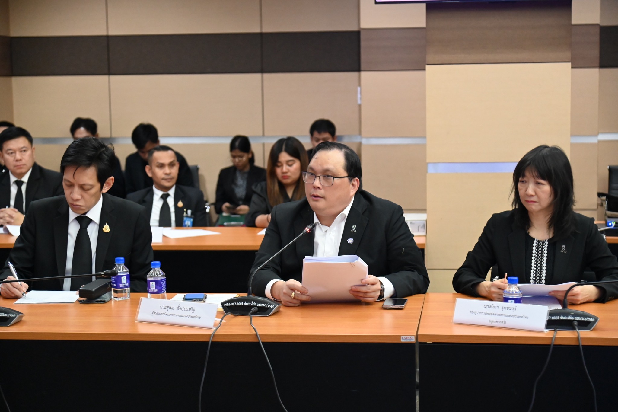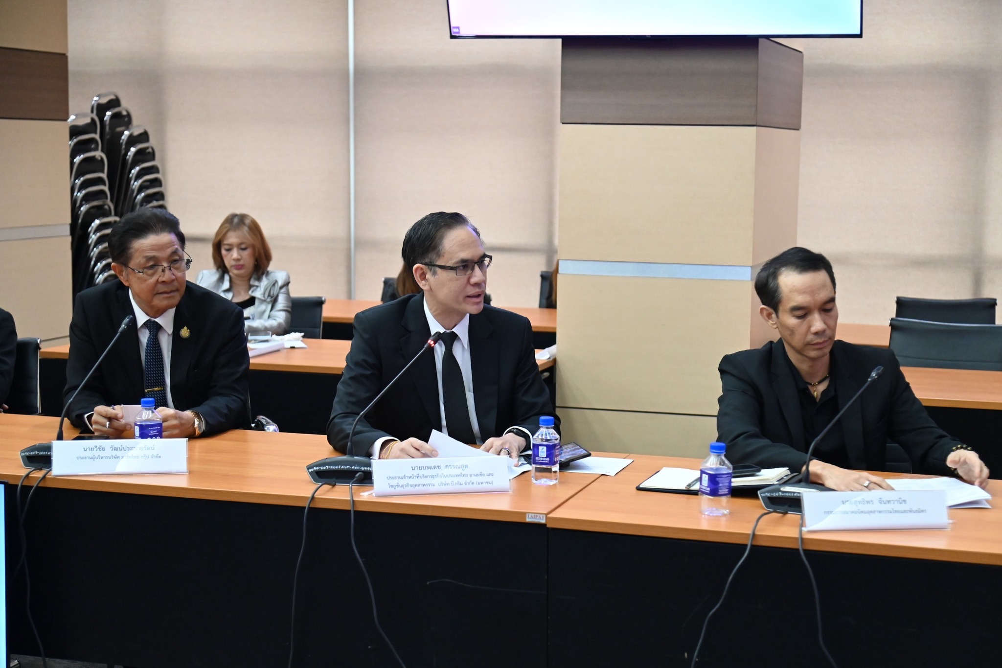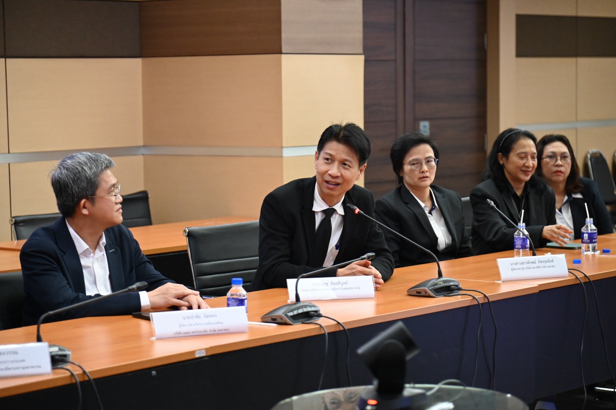 นายปณตสรรค์ สูจยานนท์ รองอธิบดีกรมโรงงานอุตสาหกรรม นายสุเมธ ตั้งประเสริฐ ผู้ว่าการการนิคมอุตสาหกรรมแห่งประเทศไทย นางนิภา รุกขมธุร์ รองผู้ว่าการการนิคมอุตสาหกรรมแห่งประเทศไทย และนางสาวจิรัฐิติกาล จันทราทิพย์ ประจำสำนักเลขาธิการนายกรัฐมนตรี ร่วมต้อนรับคณะผู้บริหารจากสมาคมนิคมอุตสาหกรรมไทยและพันธมิตร นำโดยนางอัญชลี ชวนิชย์ นายกสมาคมฯ พร้อมคณะกรรมการและคณะที่ปรึกษาสมาคมฯ ซึ่งเป็นผู้ประกอบการภาคเอกชนที่ร่วมดำเนินการจัดตั้งนิคมอุตสาหกรรมกับการนิคมอุตสาหกรรมแห่งประเทศไทย (กนอ.) เข้าพบ ณ ห้องประชุม อก.1 ชั้น 2 อาคารสำนักงานปลัดกระทรวงอุตสาหกรรม