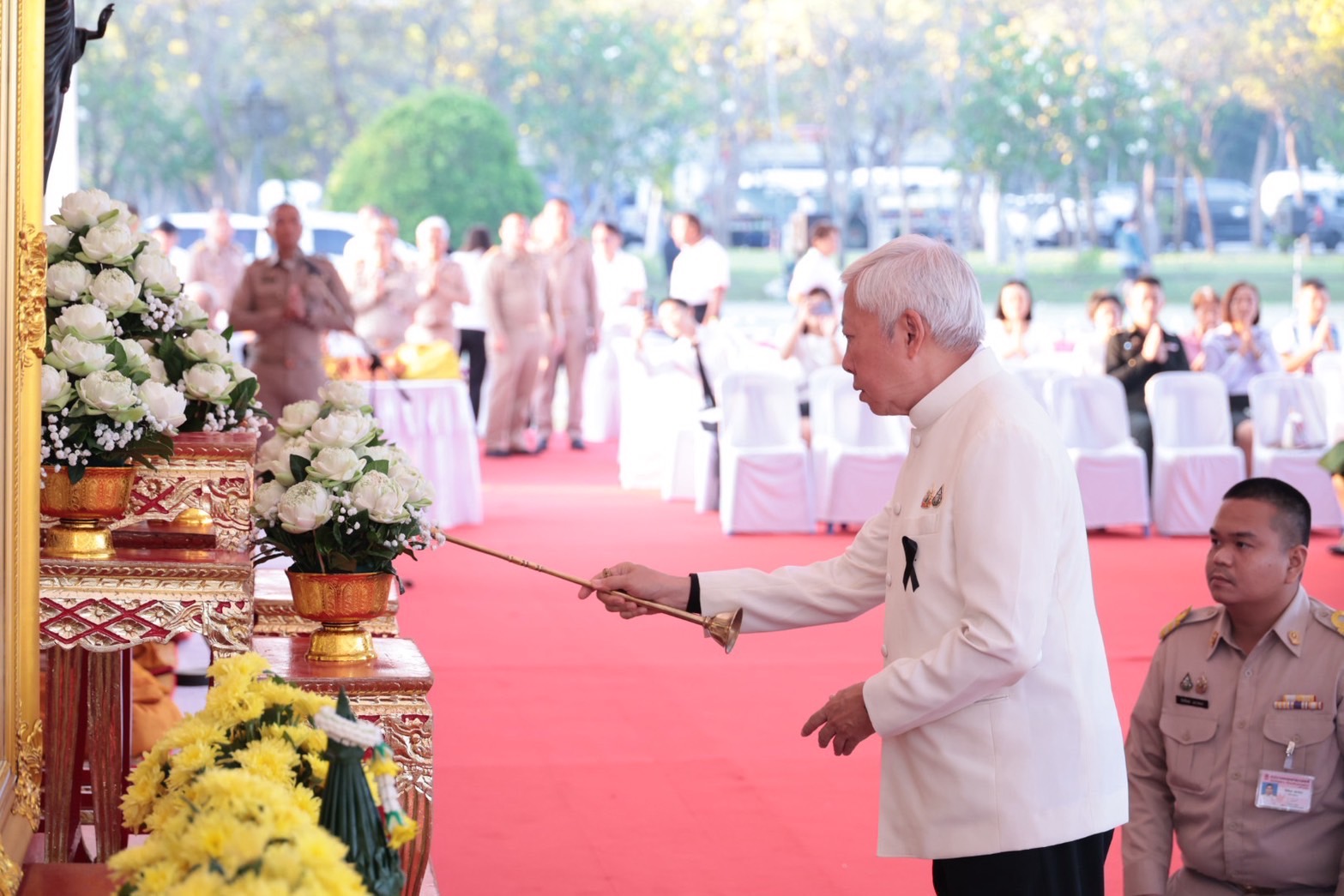 วันที่ 3 มีนาคม 2569 เวลา 06.30 น. นางดวงดาว ขาวเจริญ รองปลัดกระทรวงอุตสาหกรรม ร่วมพิธีเจริญพระพุทธมนต์และพิธีทำบุญตักบาตร เนื่องในวันมาฆบูชา โดยมี นายบวรศักดิ์ อุวรรณโณ รองนายกรัฐมนตรี เป็นประธานในพิธี พร้อมด้วย นางสาวชลาริน นิลพิฤกษ์ ผู้อำนวยการกองกลาง ผู้บริหาร เจ้าหน้าที่ หน่วยงานราชการและเอกชน เข้าร่วม ณ บริเวณองค์พระศรีศากยะทศพลญาณประธานพุทธมณฑลสุทรรศน์ พุทธมณฑล จังหวัดนครปฐม